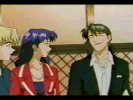 A la fin du mariage, Misato est complètement saoule, et Kaji doit la